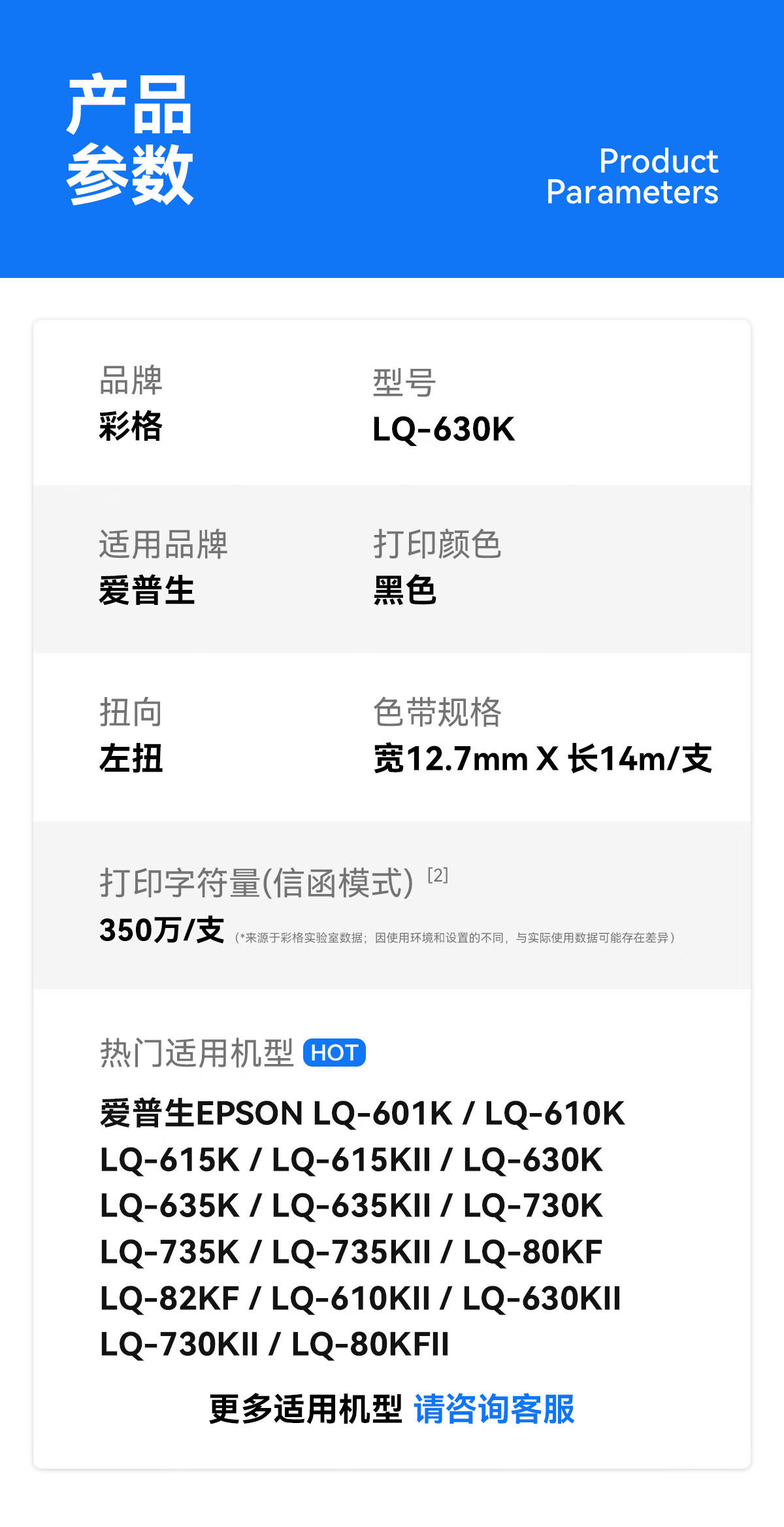 彩格LQ630K/LQ730K色带架4支装 适用爱普生EPSON LQ630K LQ635K LQ730K LQ735K II LQ80KF针式打印机