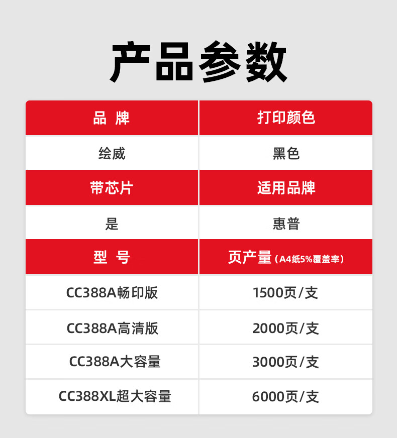 绘威 CC388A硒鼓适用惠普M1136 M126a P1106 P1108 M1213nf 88X硒鼓 【大容量】88A硒鼓/3500页/4支