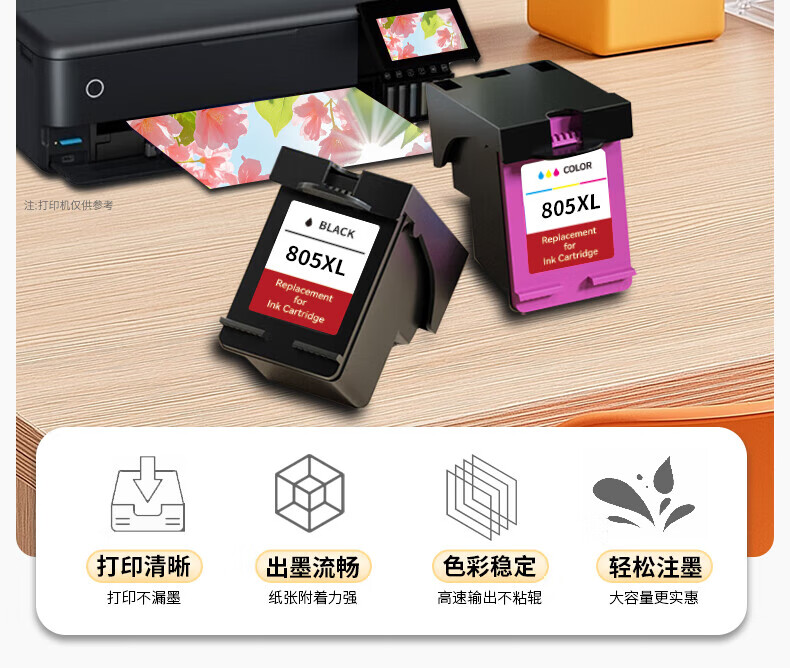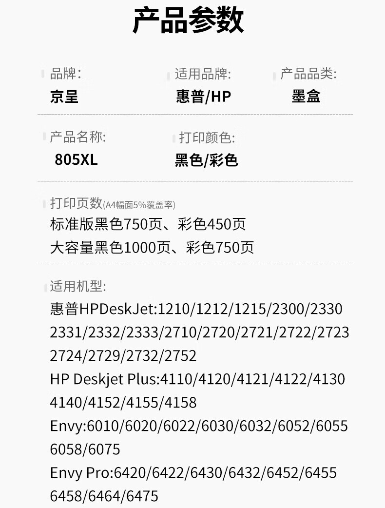 京呈805墨盒适用惠普2720 2722 2723 2729 2700 2330 2332打印机 【1750页】805XXL 大容量黑彩墨盒套装