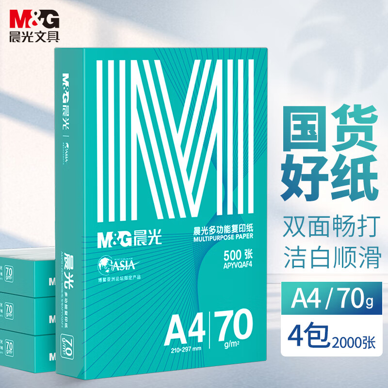晨光(M&G)绿晨光A4 70g 多功能双面打印纸 高性价比复印纸 500张/包 4包/箱(整箱2000张)APN1B002