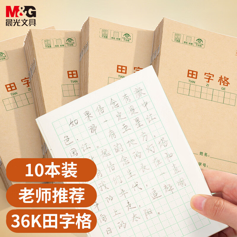 晨光(M&G)文具田字格本36K语文作业本 11行8列88格一年级小学生练习本幼儿园抄书笔记本本子10本K36124D