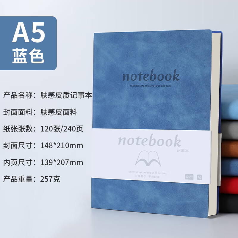 嘉然恒商务肤感羊巴皮笔记本本子A5加厚软皮面记事本文具高颜值办公用品工作日志会议记录本企业定制蓝色